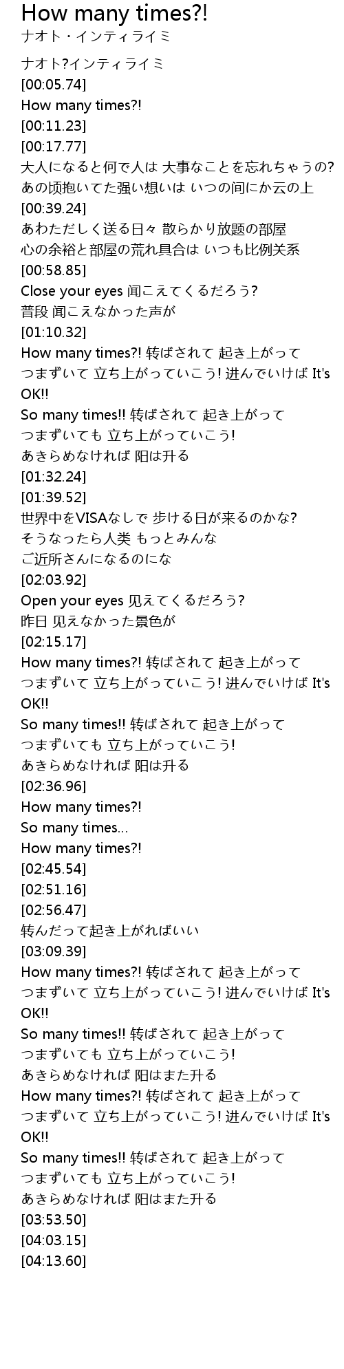 | [03:40.84] | So many times!! 转ばされて 起き上がって |