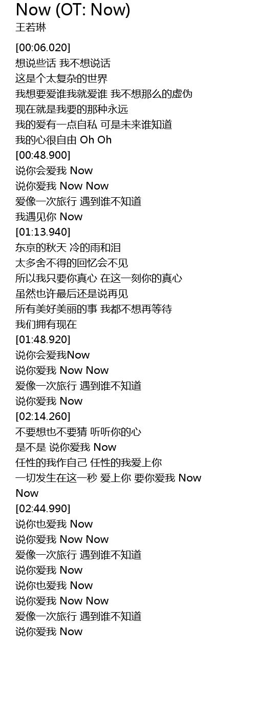 | [01:55.490] | shuō nǐ ài wǒ Now Now |