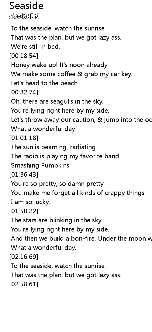 | [00:29.48] | Let's head to the beach. |