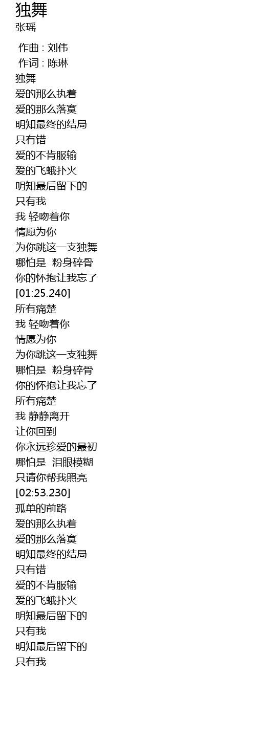 | [01:08.440] | wèi nǐ tiào zhè yī zhī dú wǔ |