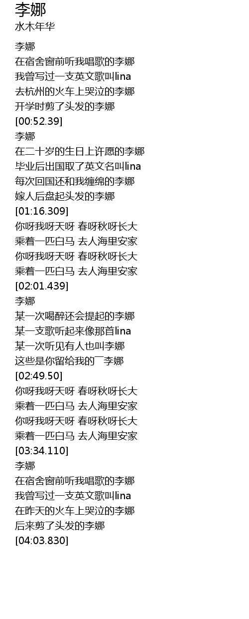 | [02:33.840] | 某一支歌听起来像那首lina |