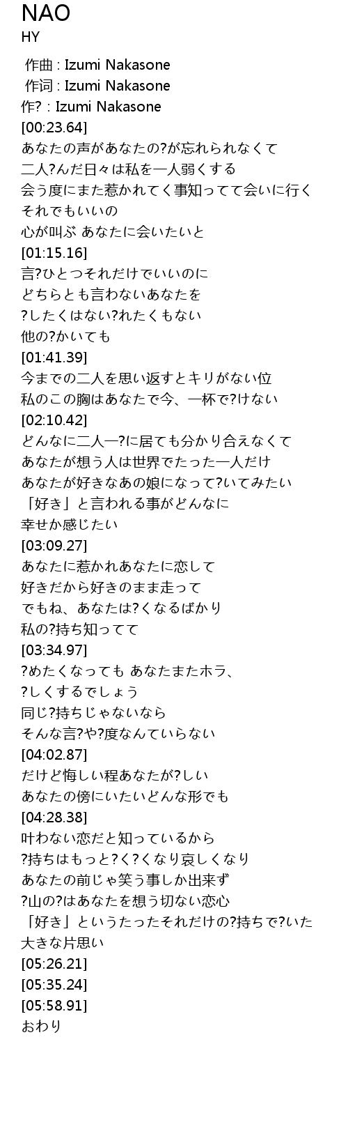| [00:00.00] | zuò qǔ : Izumi Nakasone |
