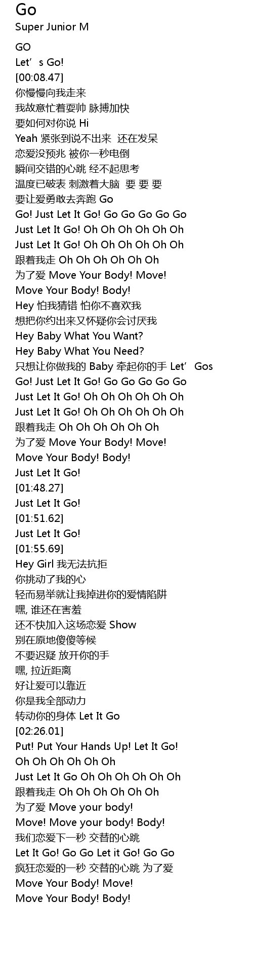 | [01:40.70] | 为了爱 Move Your Body! Move! |