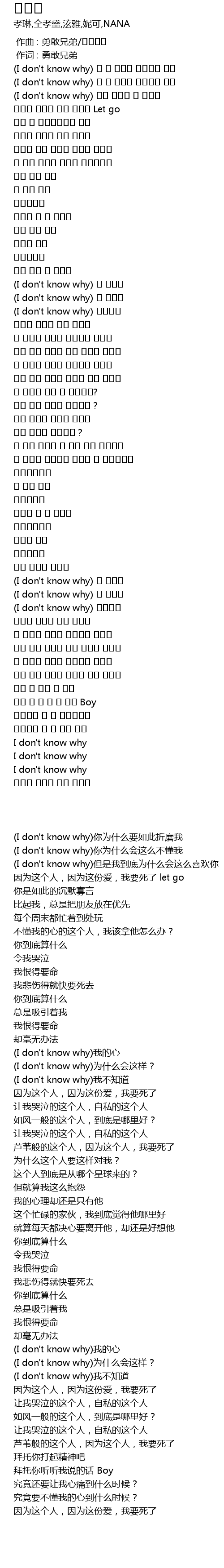 | [00:15.930] | (I don't know why)你为什么要如此折磨我 |