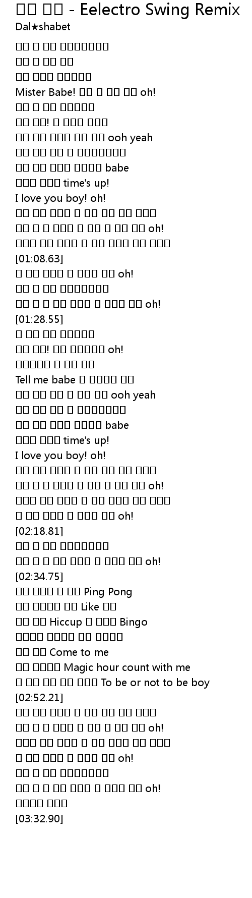| [02:48.09] | 너 정말 있기 없기 그러기 To be or not to be boy |