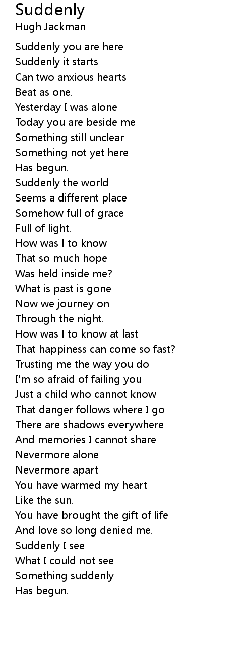 Suddenly 歌词
