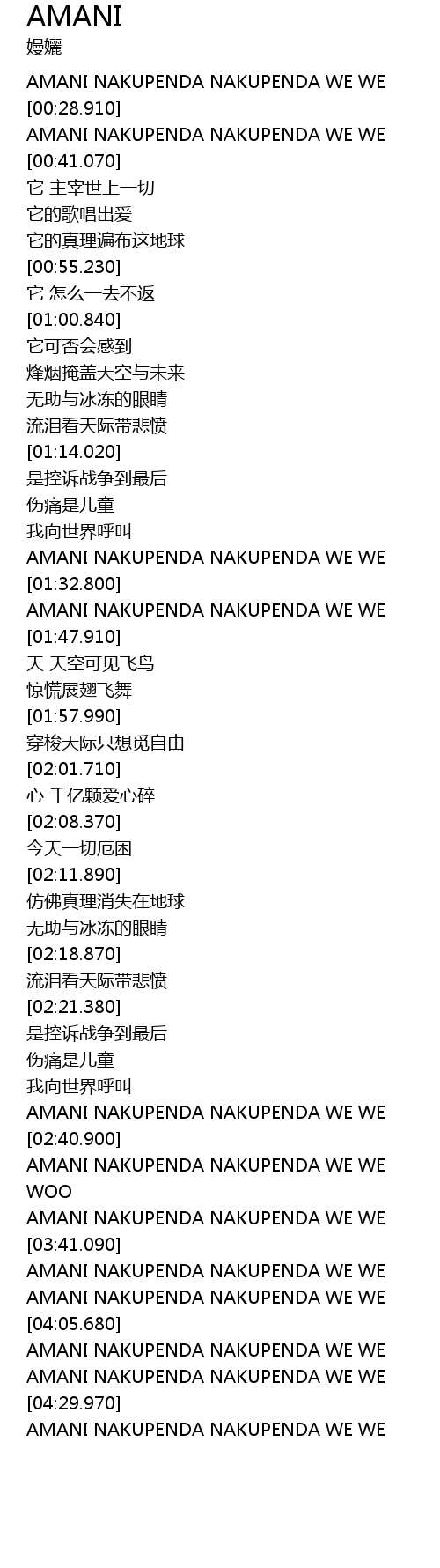 | [03:30.730] | AMANI NAKUPENDA NAKUPENDA WE WE |