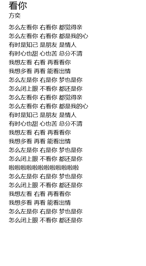 | [00:40.895] | wo xiang zuo kan you kan zai kan kan ni |