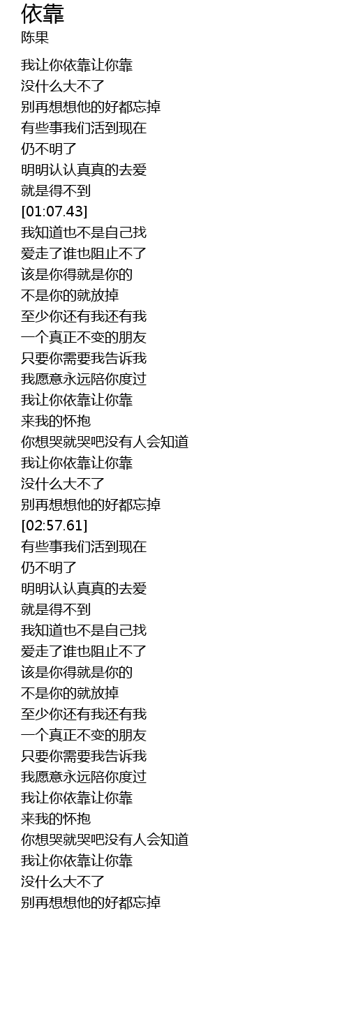 | [02:12.10] | wǒ ràng nǐ yī kào ràng nǐ kào |