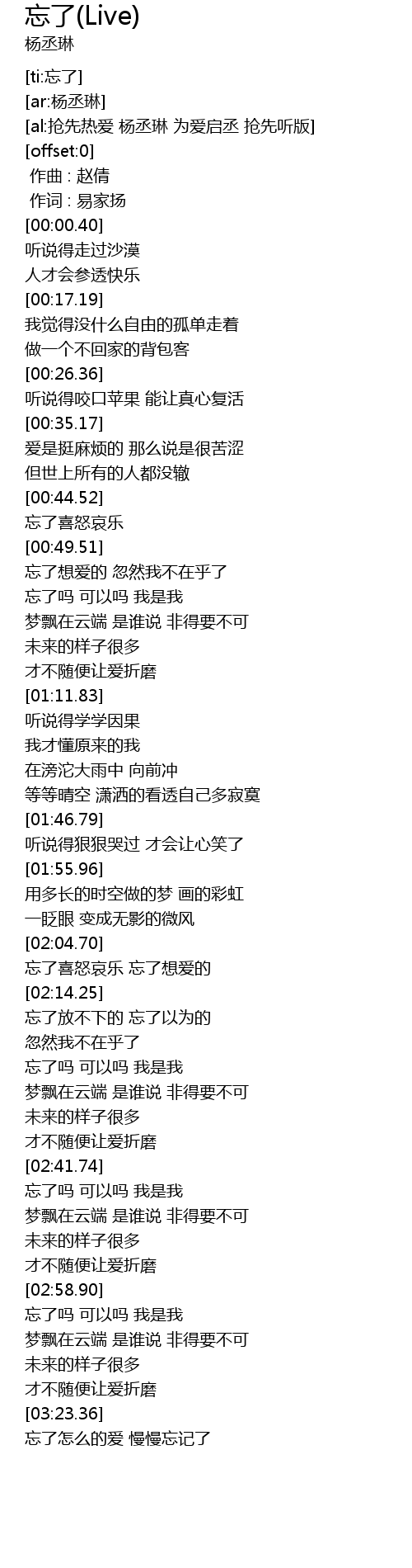 | 歌曲 | 忘了(Live) |