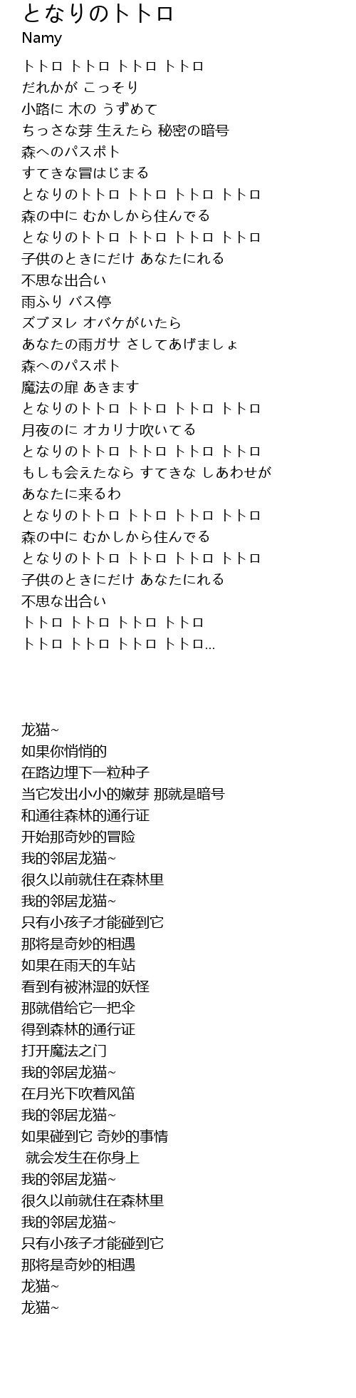となりのトトロ トトロ トトロ トトロ |