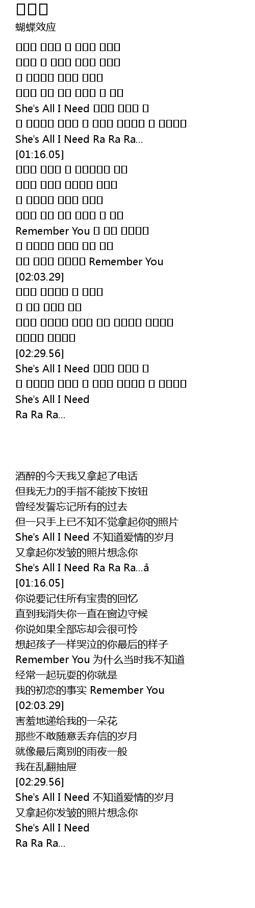 | [00:43.90] | She's All I Need 不知道爱情的岁月 |