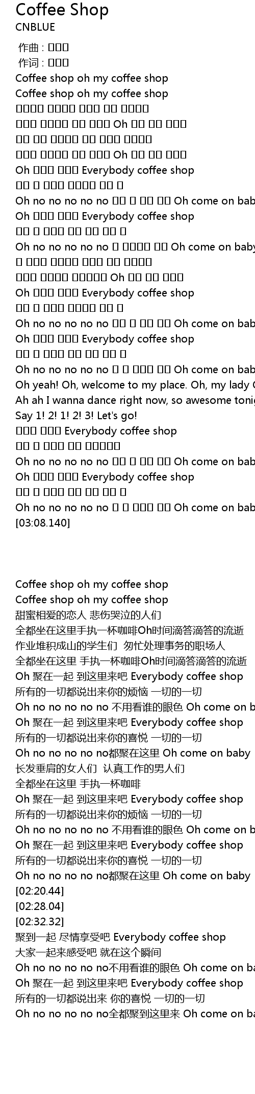 | [00:04.420] | Coffee shop oh my coffee shop |