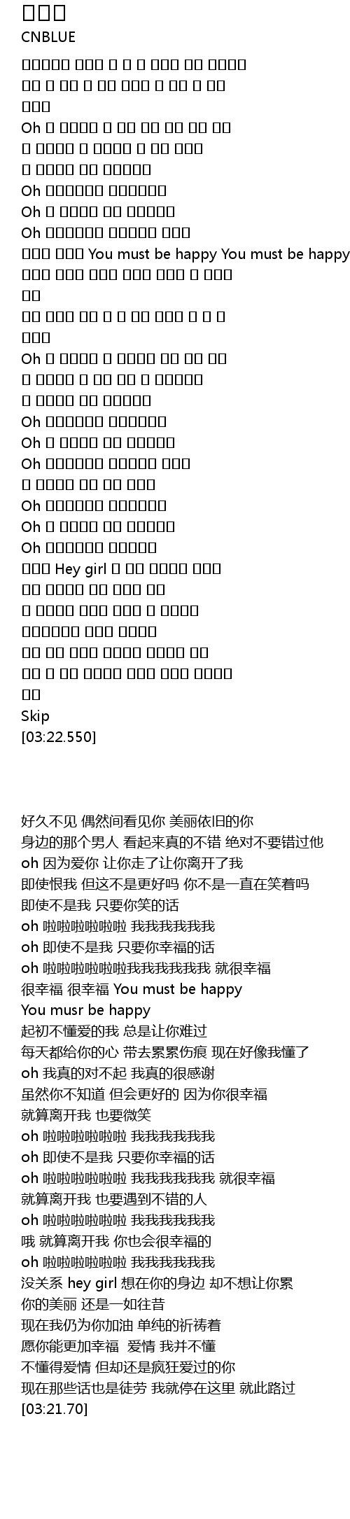 | [01:18.160] | 행복해 행복해 You must be happy You must be happy |