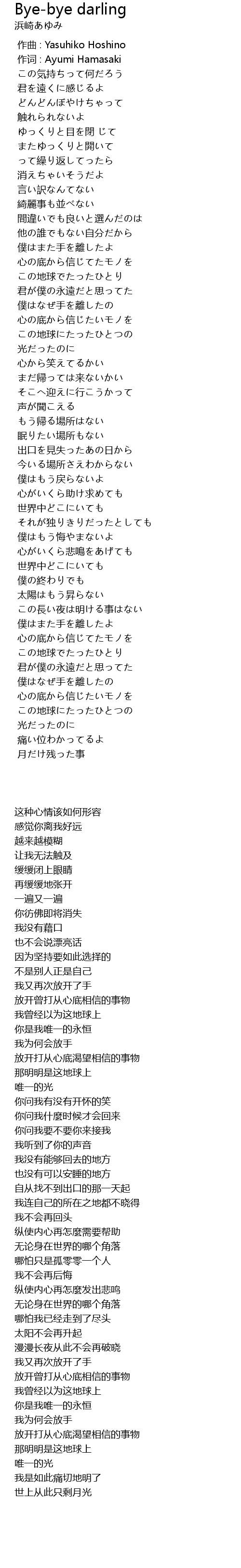 | 歌曲 | Bye-bye darling |