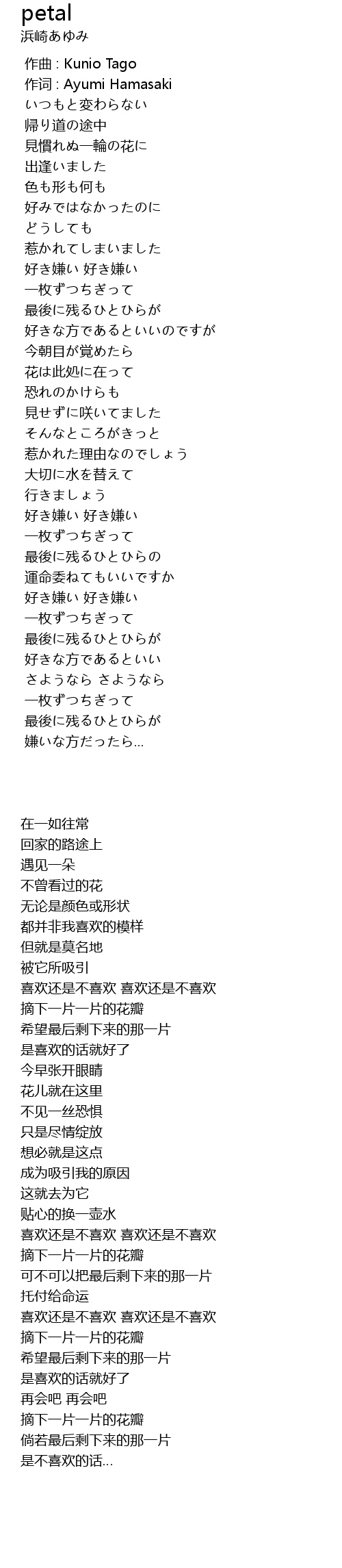 作词 : Ayumi Hamasaki |