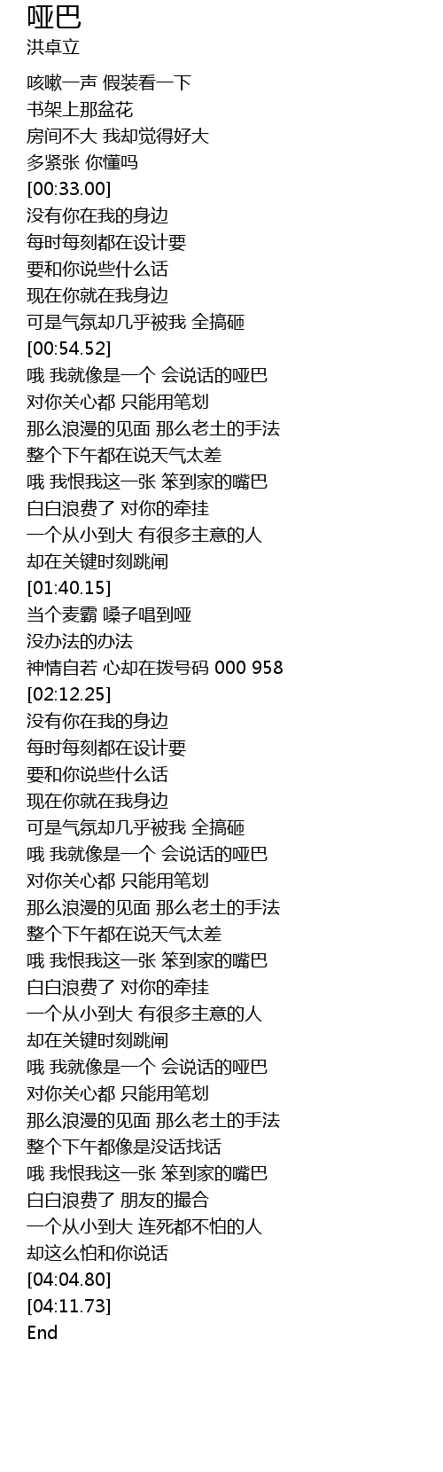 | [03:18.69] | 哦 我就像是一个 会说话的哑巴 |