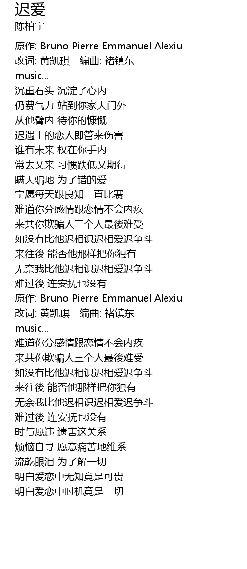 | 歌曲 | 迟爱 |