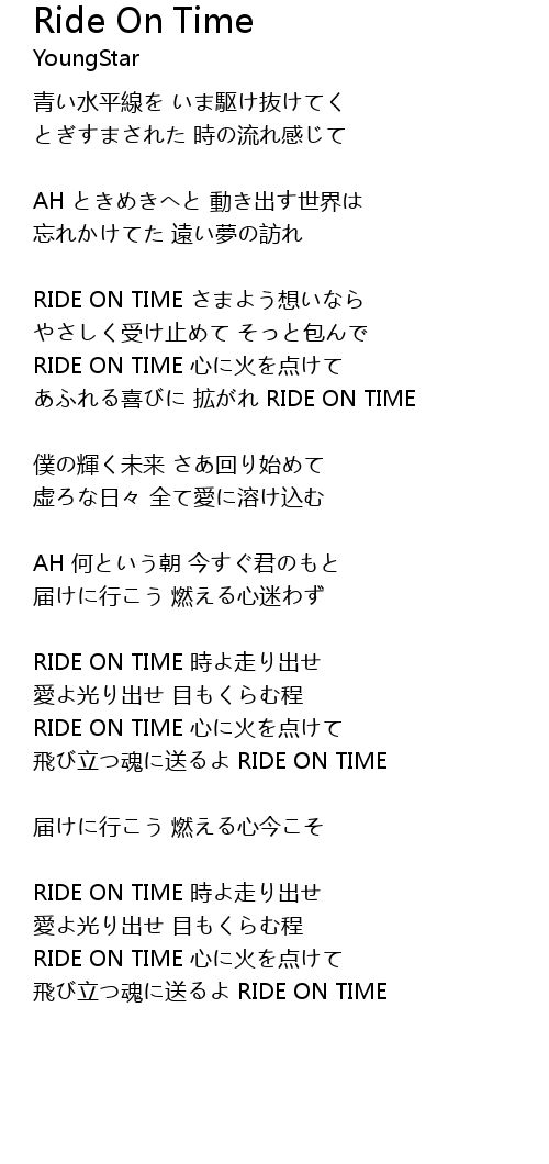 | あふれる喜びに 拡がれ RIDE ON TIME | |
