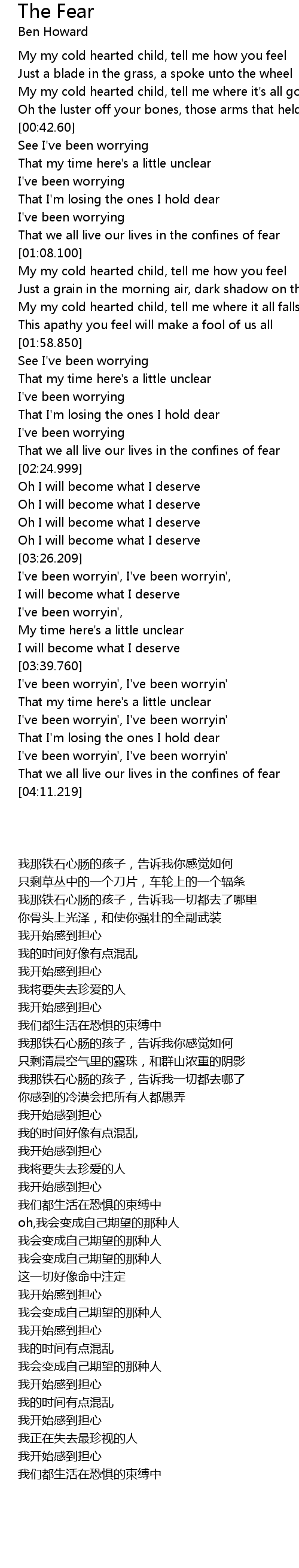 | [03:58.159] | 我们都生活在恐惧的束缚中 |