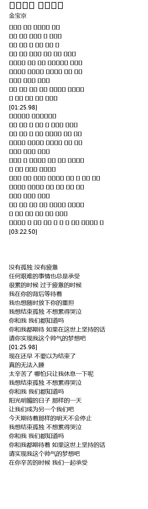 | [01:53.53] | 혼자라고 생각말기 힘들다고 울지 말기 |