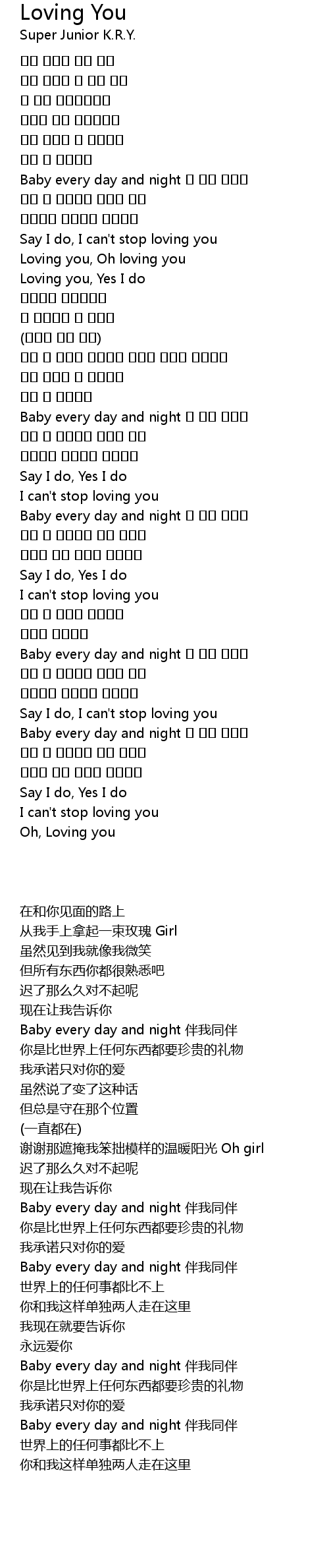 | [00:39.770] | Baby every day and night 내 곁에 있어줄 |