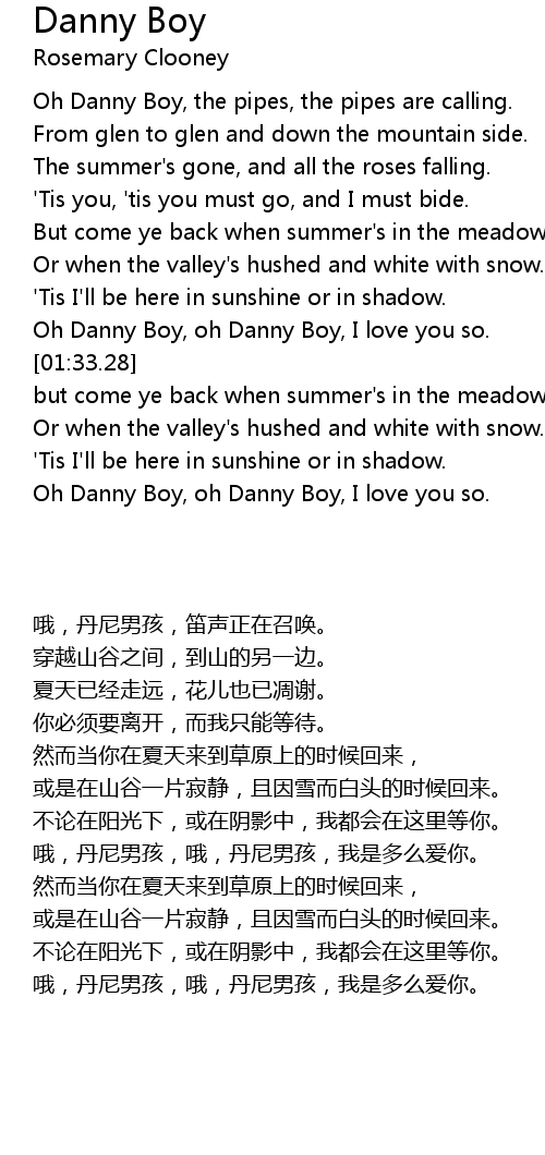 Oh Danny Boy, oh Danny Boy, I love you so. |