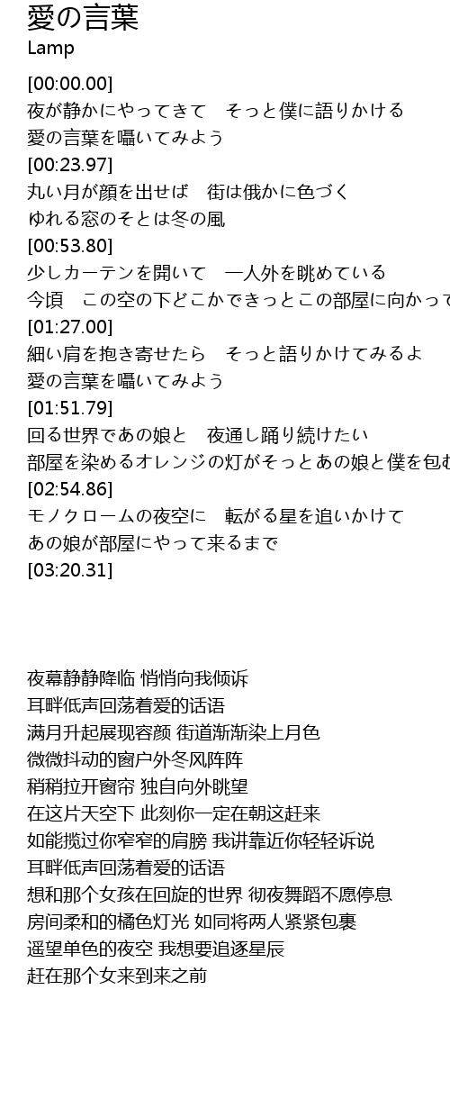 | [01:43.52] | 愛の言葉を囁いてみよう |