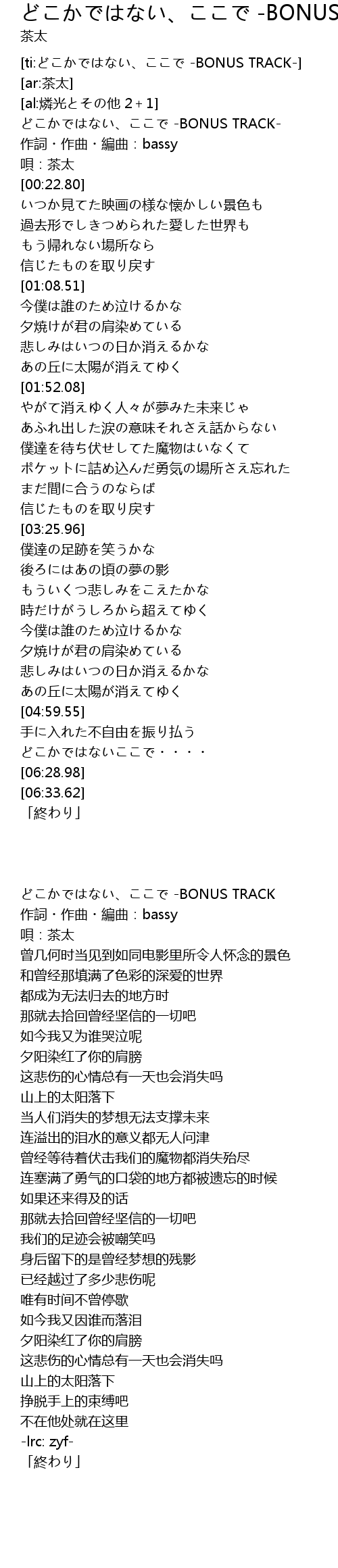 | [00:02.00] | どこかではない、ここで -BONUS TRACK |