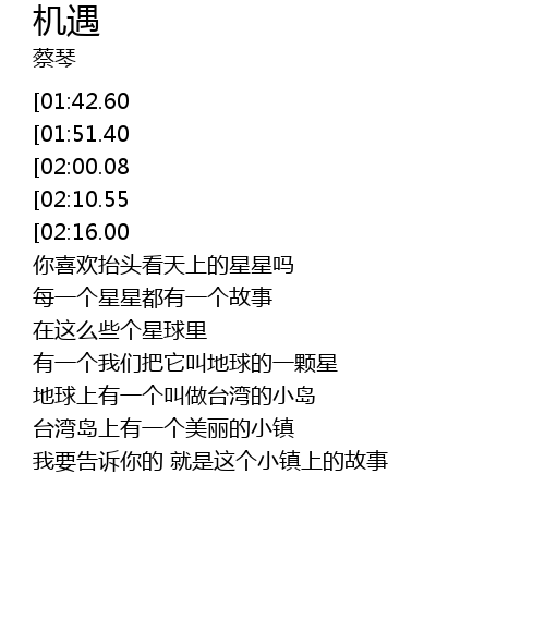 | [03:34.46][02:00.08][01:17.37] | 人生的际遇稍纵即逝 |