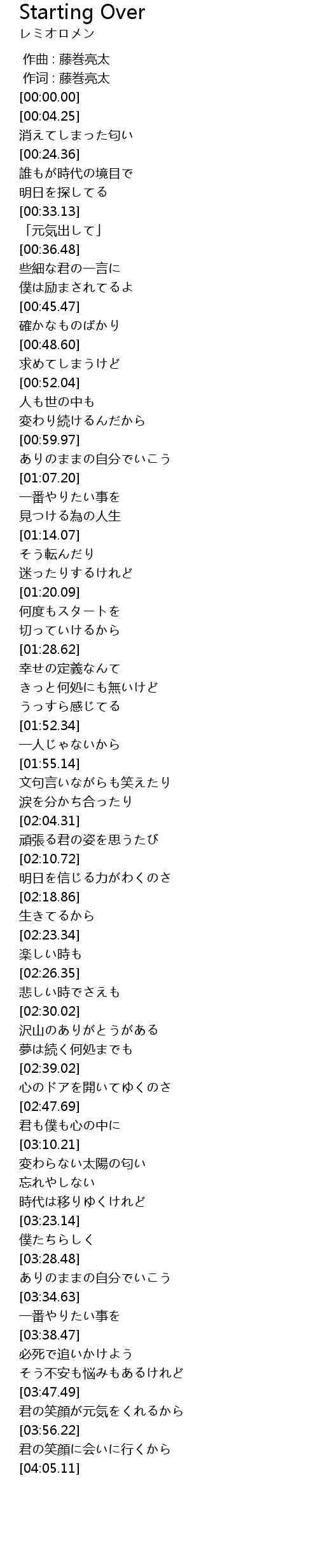 | [01:21.52] | 何度もスタートを |
