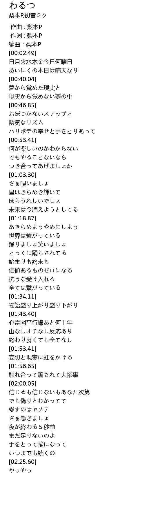 | [00:00.00] | 作曲 : 梨本P |