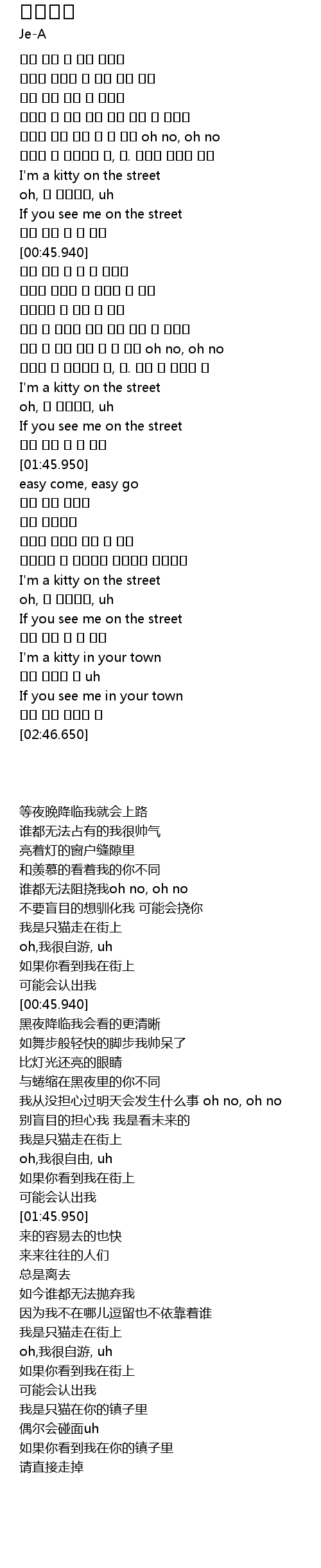 | [00:31.950] | I' m a kitty on the street |