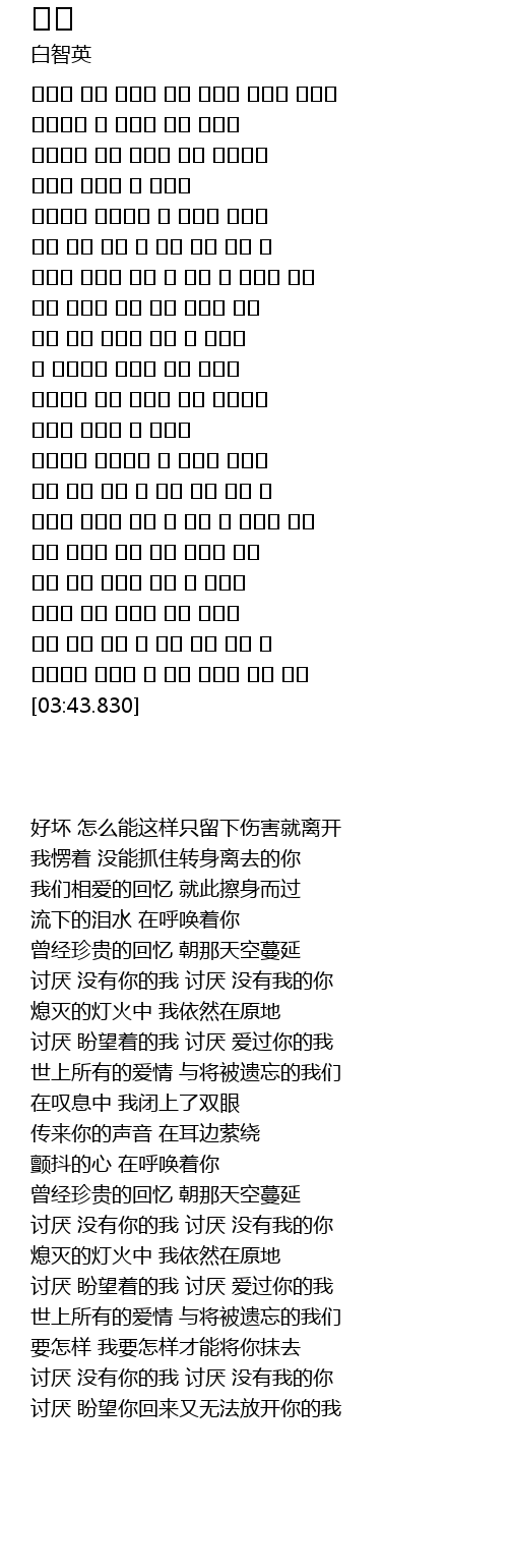 | [03:20.72] | 讨厌 没有你的我 讨厌 没有我的你 |