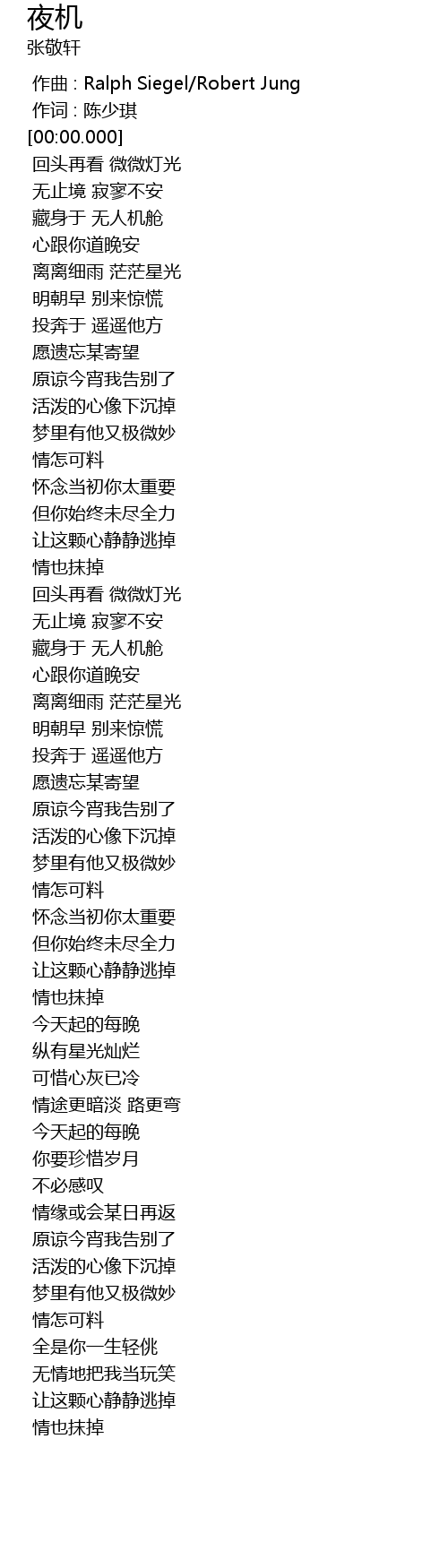 | [00:00.00] | 作曲 : Ralph Siegel/Robert Jung |