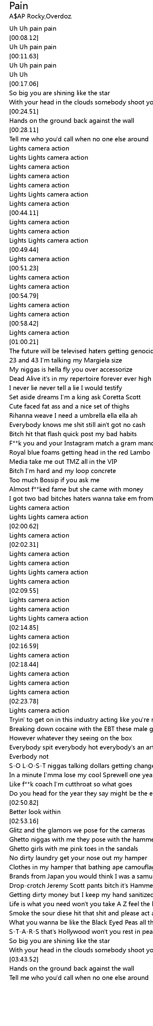 [02:05.95] Lights Lights camera action