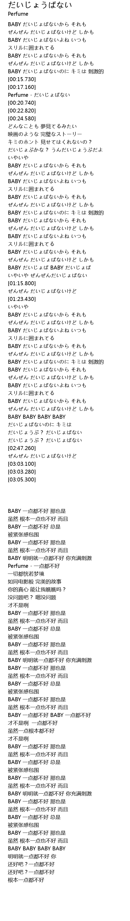 BABY だいじょばないよね いつも |
