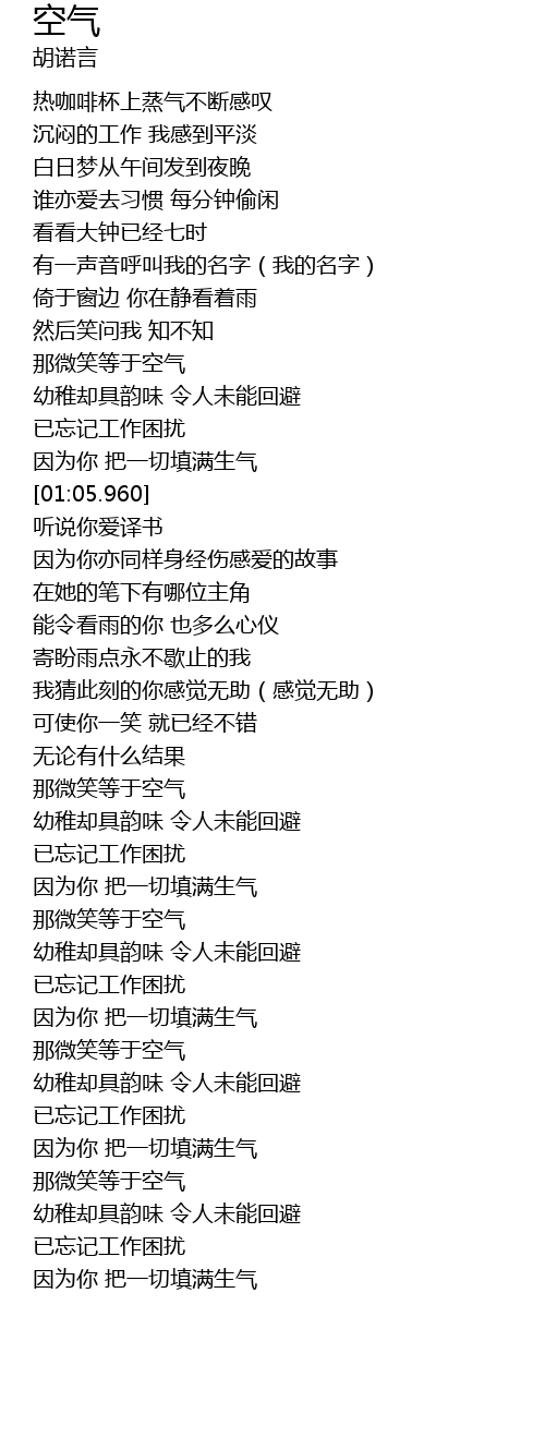| [03:01.510] | nà wēi xiào děng yú kōng qì |