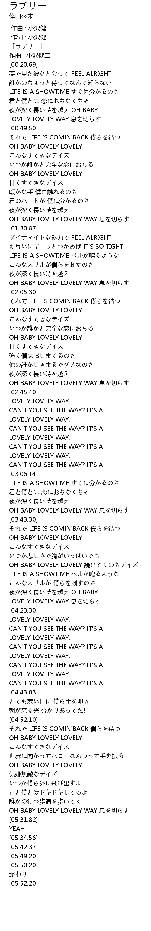 | [03:58.70] | OH BABY LOVELY LOVELY 続いてくのさデイズ |