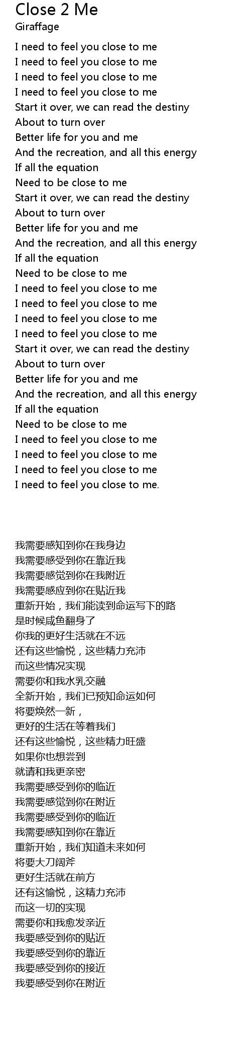 I need to feel you close to me |