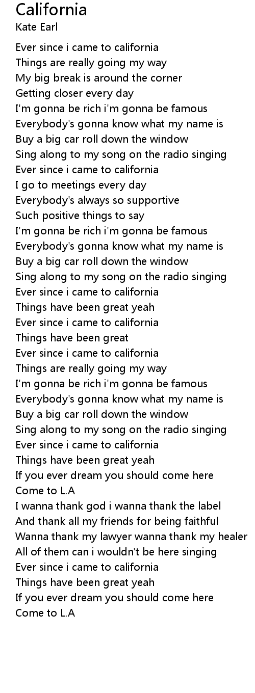 | [00:06.68] | Ever since i came to california |