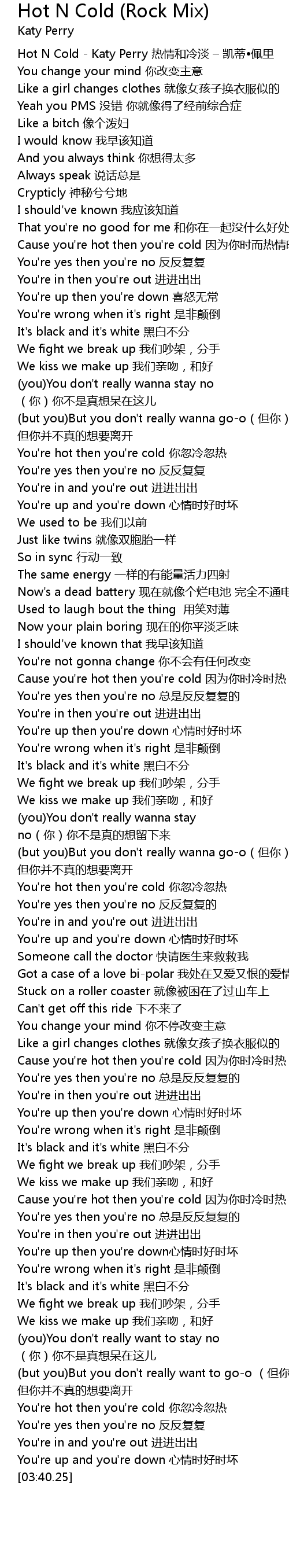 | [00:01.47] | Hot N Cold Katy Perry re qing he leng dan kai di pei li |
