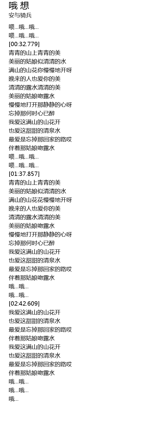 | [01:38.878] | 青青的山上青青的美 |