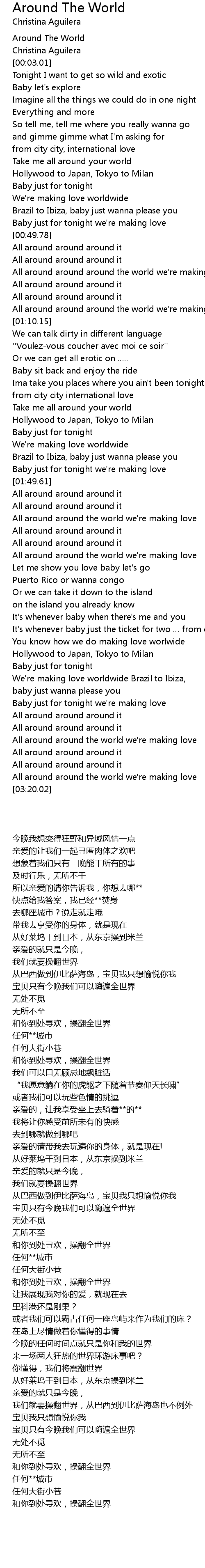 | [02:39.06] | We're making love worldwide Brazil to Ibiza, |