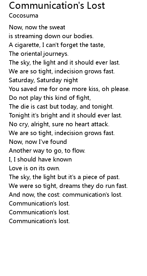 And now, the cost: communication's lost. |