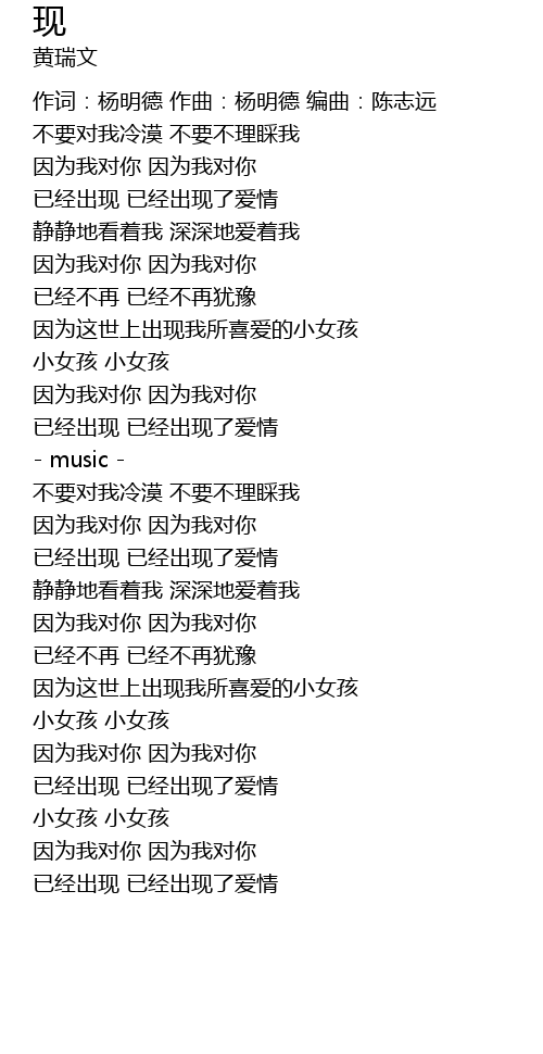 | [00:37.980] | 已经出现 已经出现了爱情 |