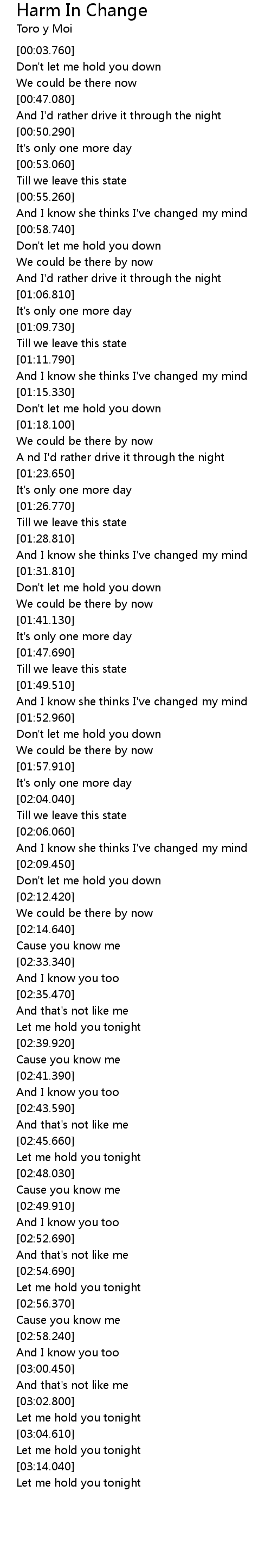 Harm In Change 歌词