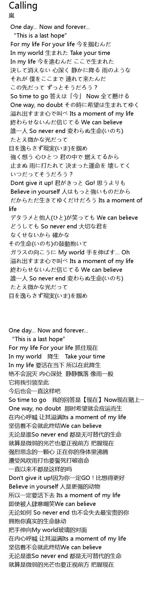 | [01:19.470] | 誰一人 So never end 変わらぬ生命(いのち) |