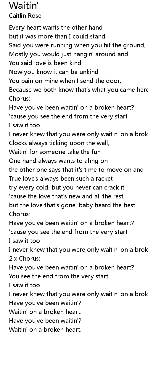 Have you've been waitin' on a broken heart? |