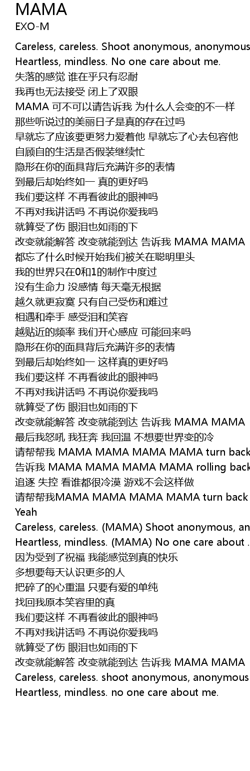 | [03:23.500] | Careless, careless. MAMA Shoot anonymous, anonymous. MAMA |